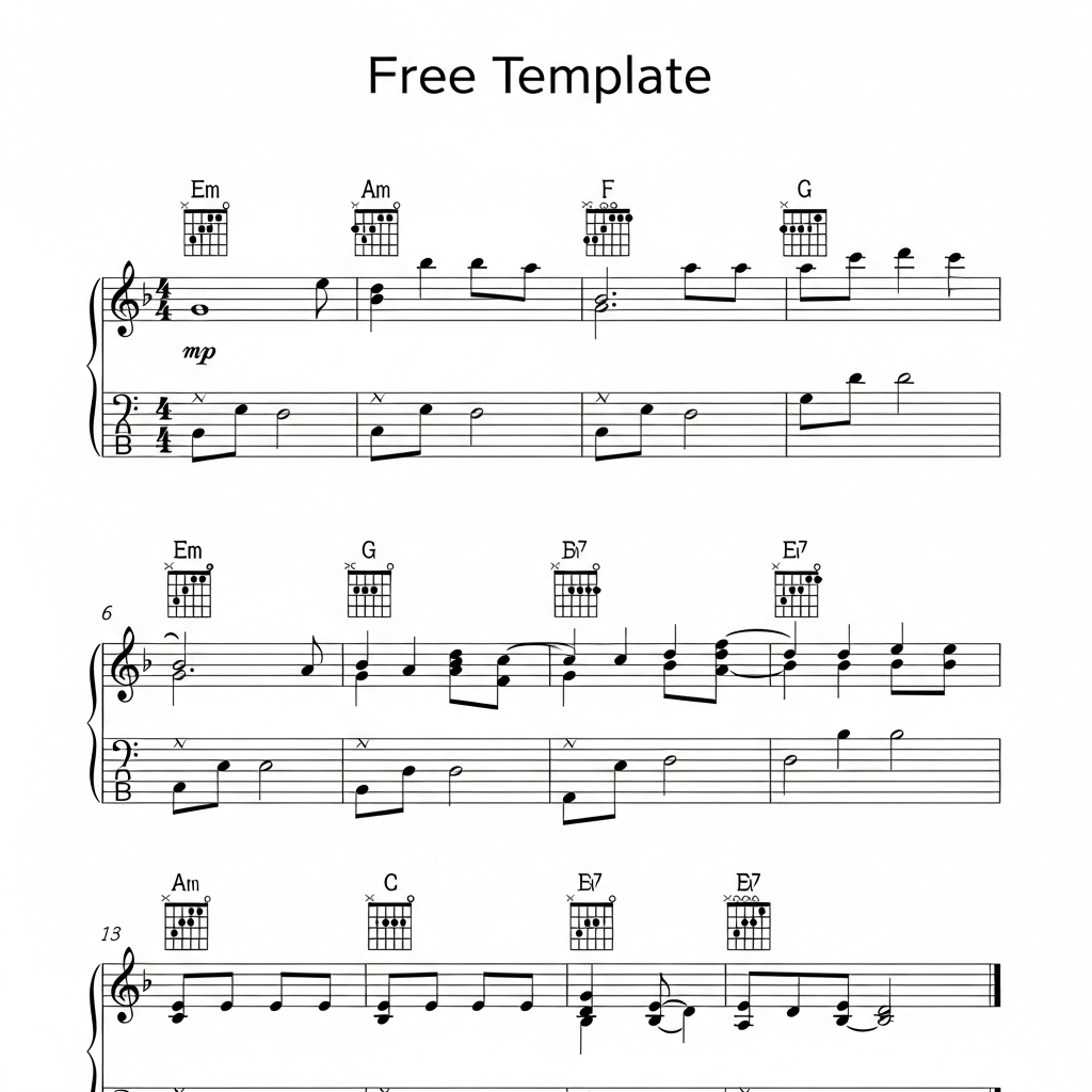 Få din gratis skabelon til sang! Skab unikke melodier med vores lette guider. Perfekt for sangskrivere i Danmark. Start din musikrejse i dag! ✨